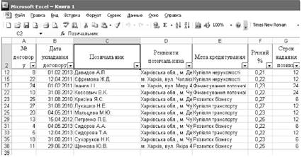 Рис. 1.12. Результат встановлення автофільтра