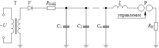 – батарея конденсаторів; Р – розрядник керований; RН – навантаження;