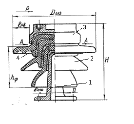 скріплюється з металевими арматурами – штирем і ковпачком або шапкою 3. Ізолююча деталь опорних штирових