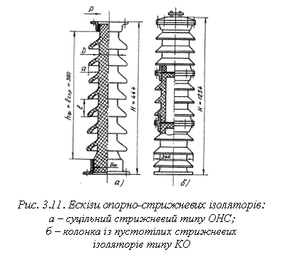 окремих пустотілих стрижневих ізоляторів (рис. 3.11, б).