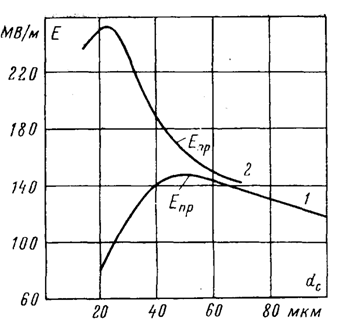 ізоляції діелектриків починає проявлятися крайовий ефект і Епр знижується. Внаслідок викладеного механізму Епр