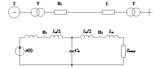 електропередачі; В1 і В2 – вимикачі; Lн – еквівалентна індуктивність із
