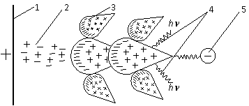 лавини; 4 – фотони; 5 – електрон, що