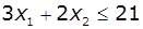 X1+X2≤6;