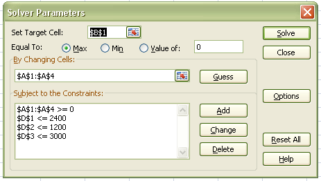 невід’ємність змінних $A$1:$A$4≥0.