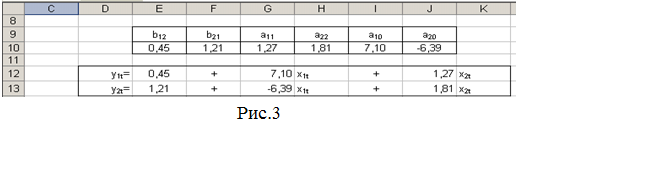 Таким чином, при збільшенні імпорту y2 на 1% експорт y1 збільшується в середньому на 0,689%, а при збільшенні експорту y1 на 1% імпорт y2 збільшується в середньому на 0,793%.