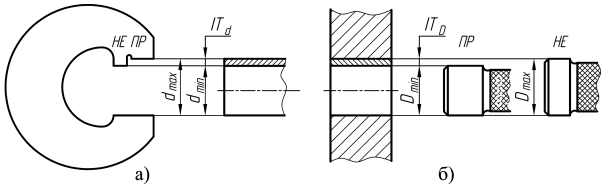 мають прохідний бік - ПР і непрохідний - НЕ. Якщо прохідний калібр проходить