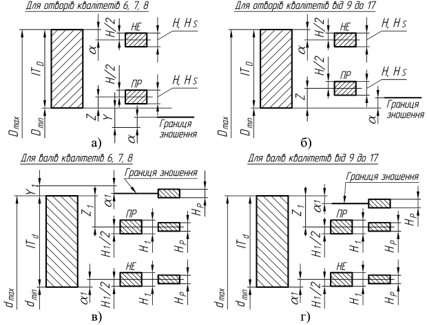 передбачають допуски на зношення калібрів. Через те, що прохідні калібри