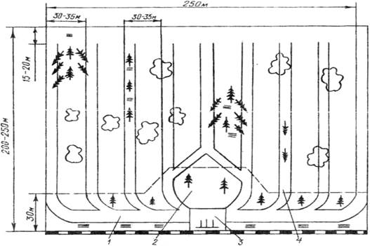 суцільні – через кожні 40- 50 м роблять розриви у 2-3 м. Якщо на площі лісосіки