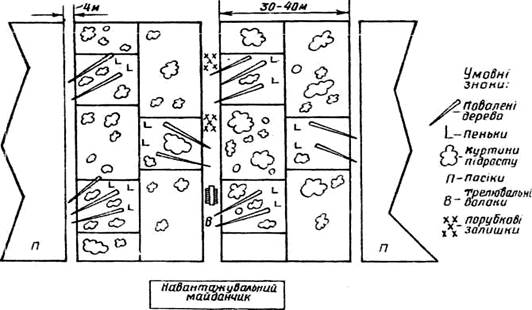 метою вирубки з розкиданими залишками слід облямовувати мінералізованими