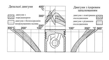 і бічних стінок поршнів двигунів різних типів. Видно, що температурні поля