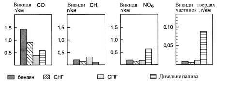 палив. Найменше викидають шкідливих речовин двигуни, які працюють на стиснутому