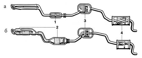 відпрацьованих газів; б – з нейтралізатором;