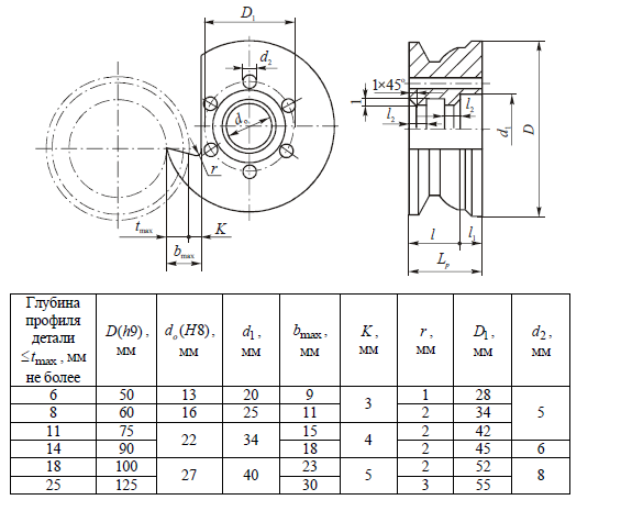 Розміри фасонних круглих різців з торцевими отворами