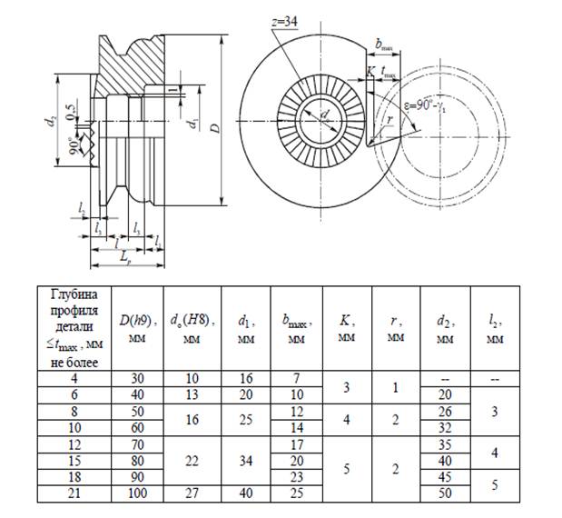 посадкових отворів круглих фасонних різців