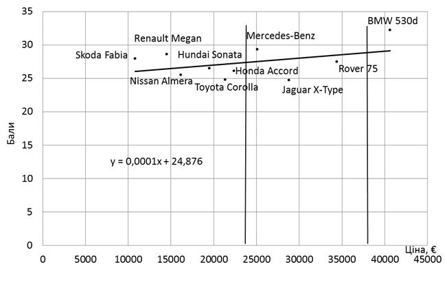 даними побудований графік “ціна-якість”, який показаний на рисунку 7.1. Аналіз