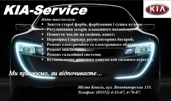 “KIA-servise – Ми працюємо, ви відпочиваєте...”.