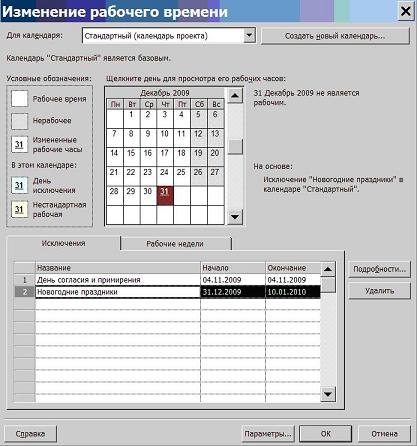 додати виняток Новорічні свята, що починається 31.12.12 та закінчується