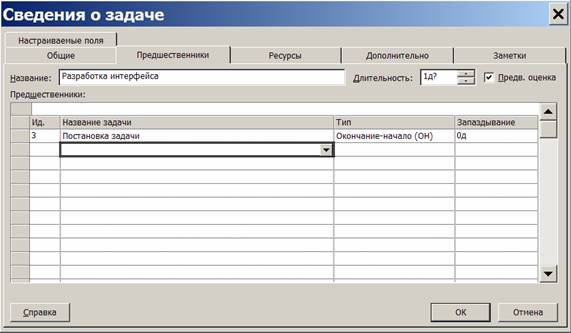 відомостей про завдання вибрати вкладку «Попередники». Вона зображена на рис.