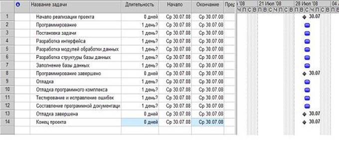 Результат - на діаграмі Ганта ці завдання