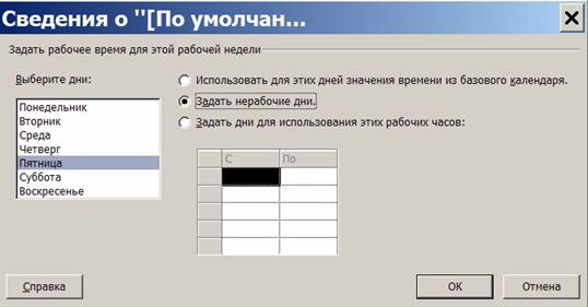 п'ятниця і для нього вибрати перемикач Задати неробочі дні. Закрити обидва