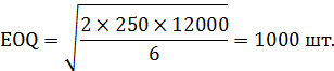 закупівлю товарів. Витрати на доставку одного замовлення складає 250 грн, річна потреба у