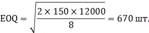 Відповідь: оптимальний розмір замовлення – 670 шт., ціна одного