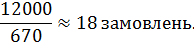 замовлення – 87100 грн, кількість замовлень на рік – 18 замовлень.