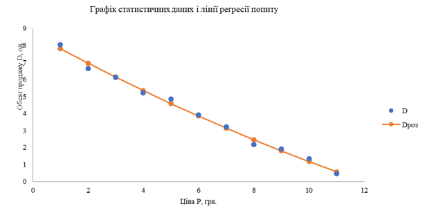 порядку. Побудувати графік статистичних даних і лінії регресії попиту (рис. 2.2).