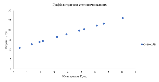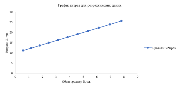 Рис. 2.7. Графік витрат для розрахункових даних обсягу попиту.
