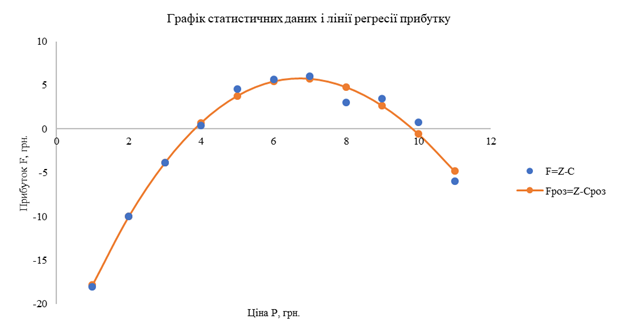 Побудувати графік прибутку залежно від ціни для статистичних і розрахункових