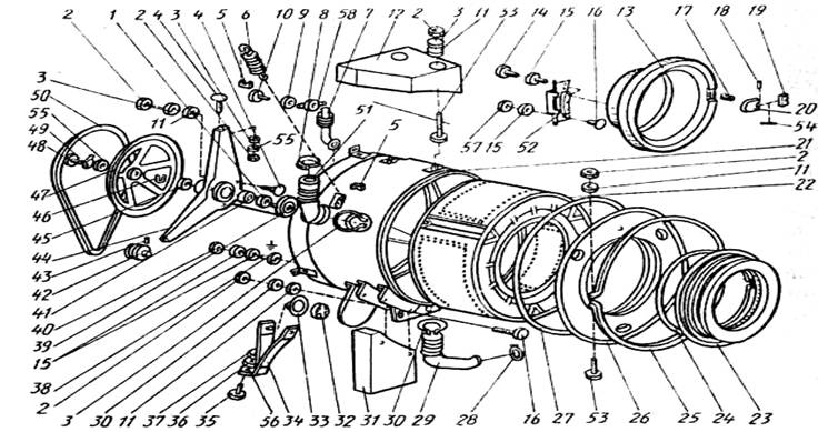 прокладкою 27, витягнути барабан 22. Зібрати машину в зворотному порядку.