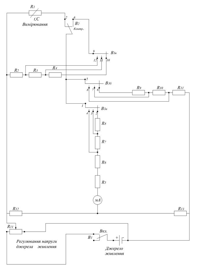 Рис. 1. Електрична схема температуроміра моделі ЭТП-М