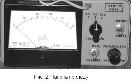 вказівником на градусній шкалі мікроамперметра в мкА.