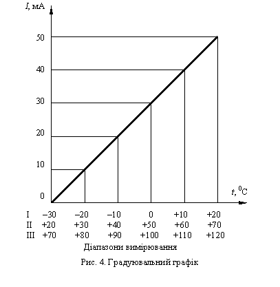 вимірювальної температури, в діагоналі моста виникає струм, який фіксується