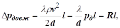 тиску на тертя у трубопроводах за рівнянням Дарсі-Вайсбаха для втрат тиску по
