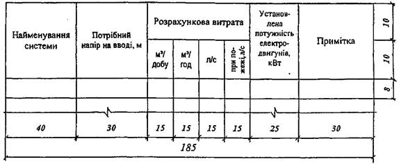Рис. Б.1. Основні показники за кресленнями водопроводу і каналізації
