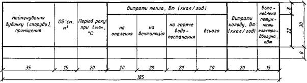 Рис. Б.2. Основні показники за кресленнями опалення та вентиляції (Таблиця оформлення результатів розрахунку) |