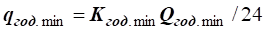 Розрахункові годинні максимальні і мінімальні витрати стічних вод, м3/год ‑ за [49], діленням на 24 год з врахуванням коефіцієнтів добової нерівномірності притоку стічних вод (максимальної та мінімальної) для роботи системи.