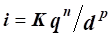 d – розрахунковий внутрішній діаметр труб, м. Значення коефіцієнта К та показників ступеня n, p приймаються за [48].