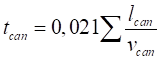 де  - тривалість накопичення та протікання дощової води від найбільш віддаленої точки до лотка проїзної частини вулиці або при наявності дощоприймачів у межах кварталу до вуличного колектора (час поверхневої концентрації);