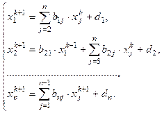 Приведемо її до вигляду X=BX+D, де B=[bij] - квадратна матриця