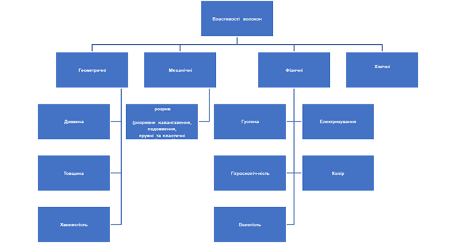 створювана при цьому структура, види основних і кінцевих обробок сировини. Розподілимо властивості волокон на чотири