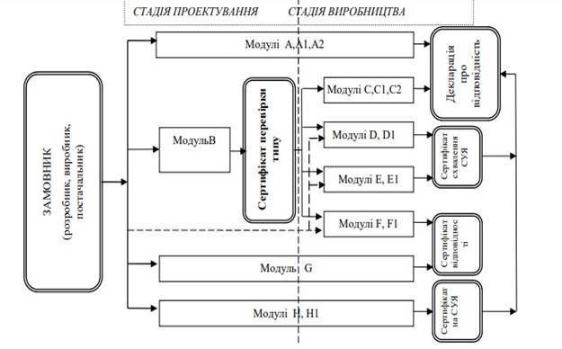 Рис. 3. Схема застосування модулів оцінки відповідності в