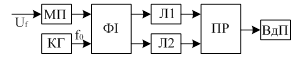 конденсаторів C1, С2 та індуктивності L забезпечує однозначну залежність відхилення