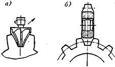 Рис. 10.8 - Зубошліфування: а) - заправлення круга трьома