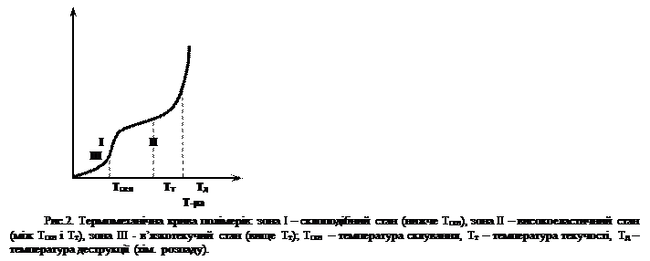 низької температури полімер перебуває у склоподібному стані (рис.1, область І),