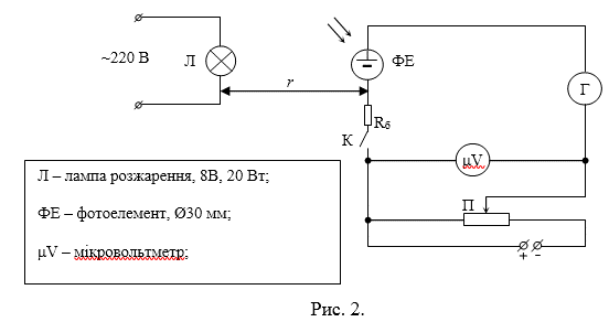 ключем К коло фотоелемента і, переміщуючи повзунок потенціометра П, встановити