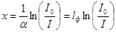 – інтенсивність світла при проходженні шару речовини товщиною x,
