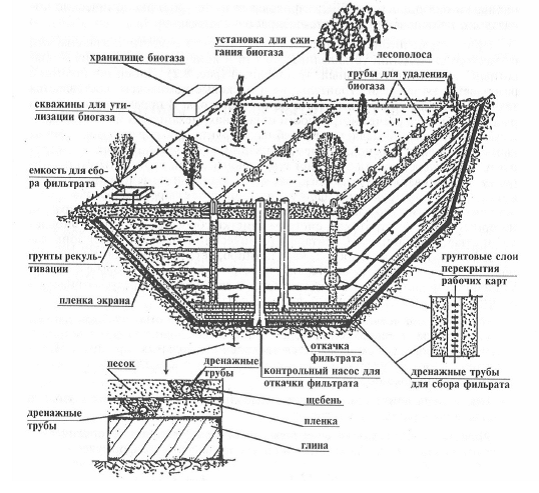 робочих карт полігона шарами ґрунту, організації системи збору, відводу й